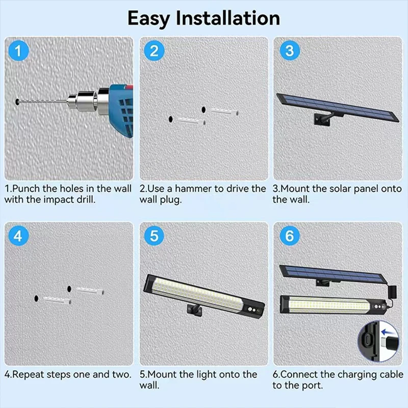 1. After receiving the goods, you need to install the sun panels in a place where the sun can shine directly for charging.