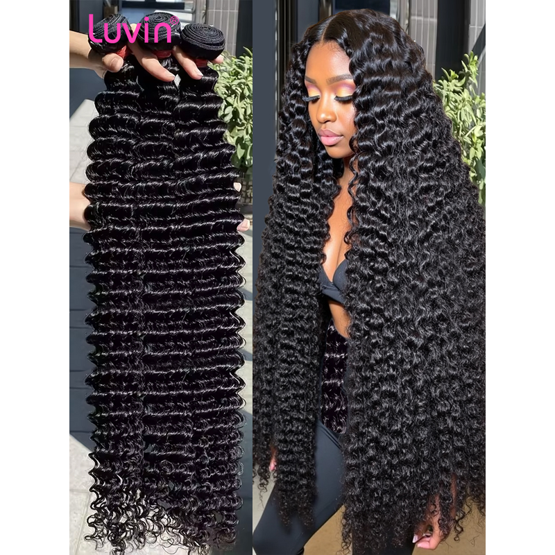 32 34 Inch Deep Wave Human Hair Bundles Brazilian Remy Unprocessed Weaving Curly Hair 1/3/4/5 Bundles Weave Extensions Deals