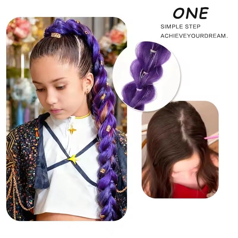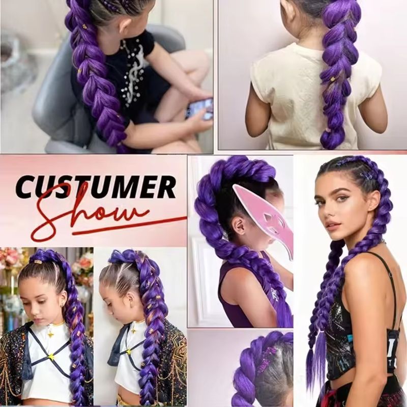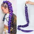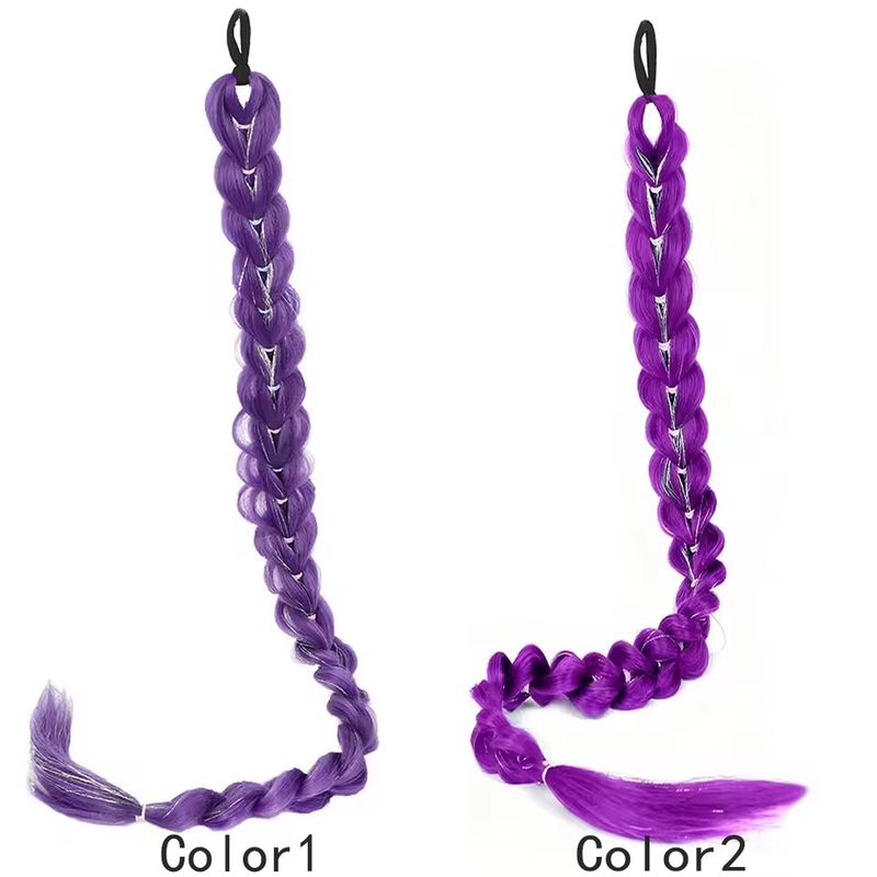 32" Extra-Long Synthetic Purple Braided Wig | Shimmering Metallic | Kids Christmas Costume Hairpiece - Rumi Collection