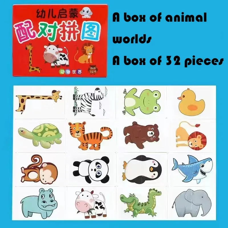 32 Pcs Enlightenment Card Matching Puzzle Early Education Cartoon Pattern Cognitive Boys and Girls Toys