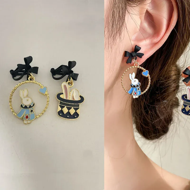 32 Style Colorful Enamel Cartoon Cute Rabbit Fox Ear Clips Funny Cat Bear Long Clip on Earrings Without Piercing for Women Girls