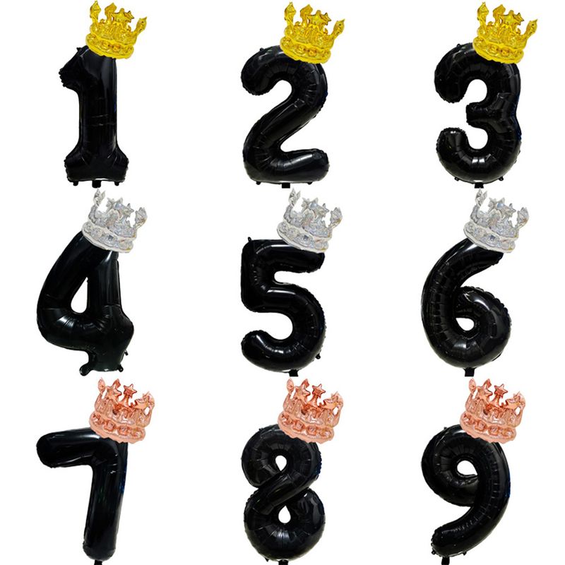 32inch Black Number Balloons 0-9 with Crown for Birthday Wedding Anniversary Party Big Number Balloon for Decorations Supplies