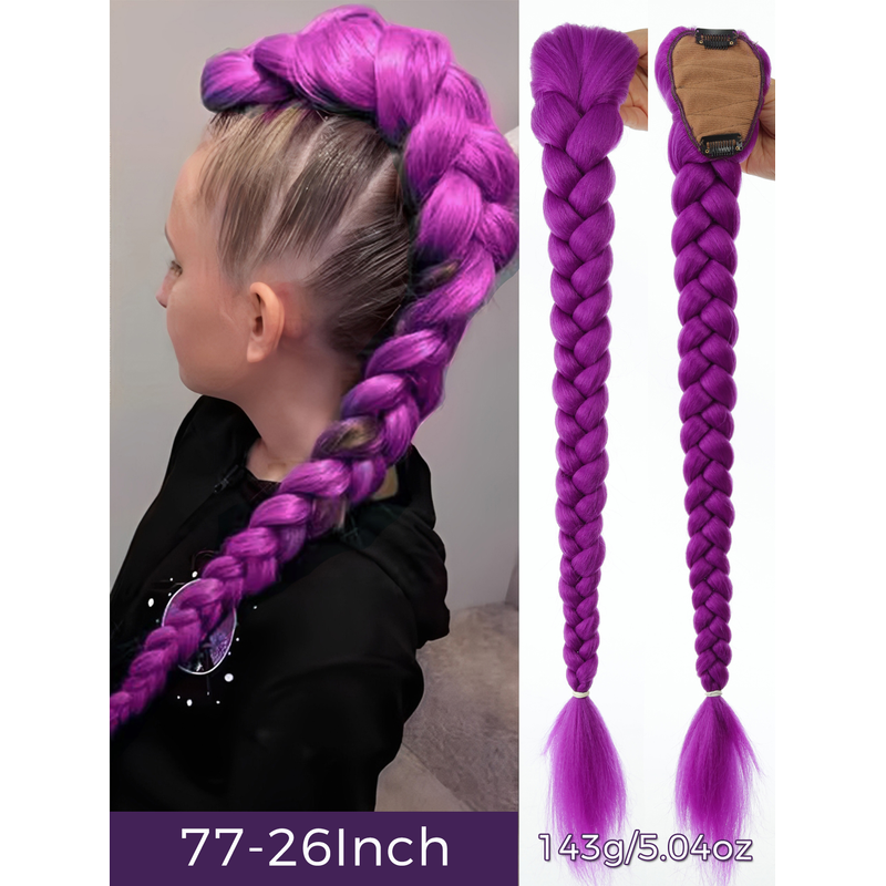 32inch Braided Purple Hair Ponytail with Tinsel Hair Wig Super Extensions Shiny Tinsel Hair for Kids Christmas Cosplay Rumi Hair