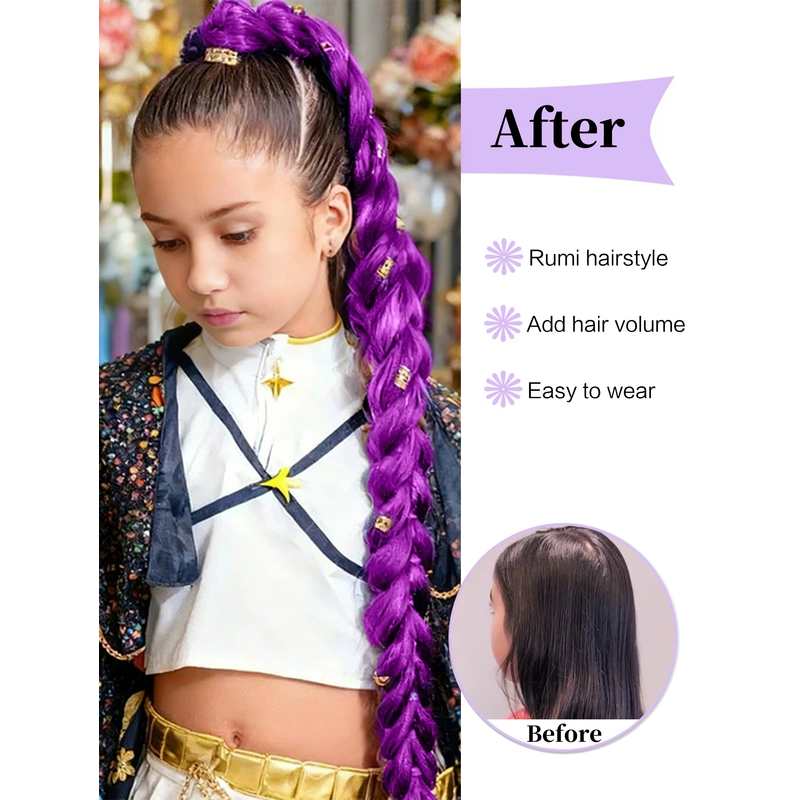 32inch Braided Purple Hair Ponytail with Tinsel Hair Wig Super Extensions Shiny Tinsel Hair for Kids Christmas Cosplay Rumi Hair