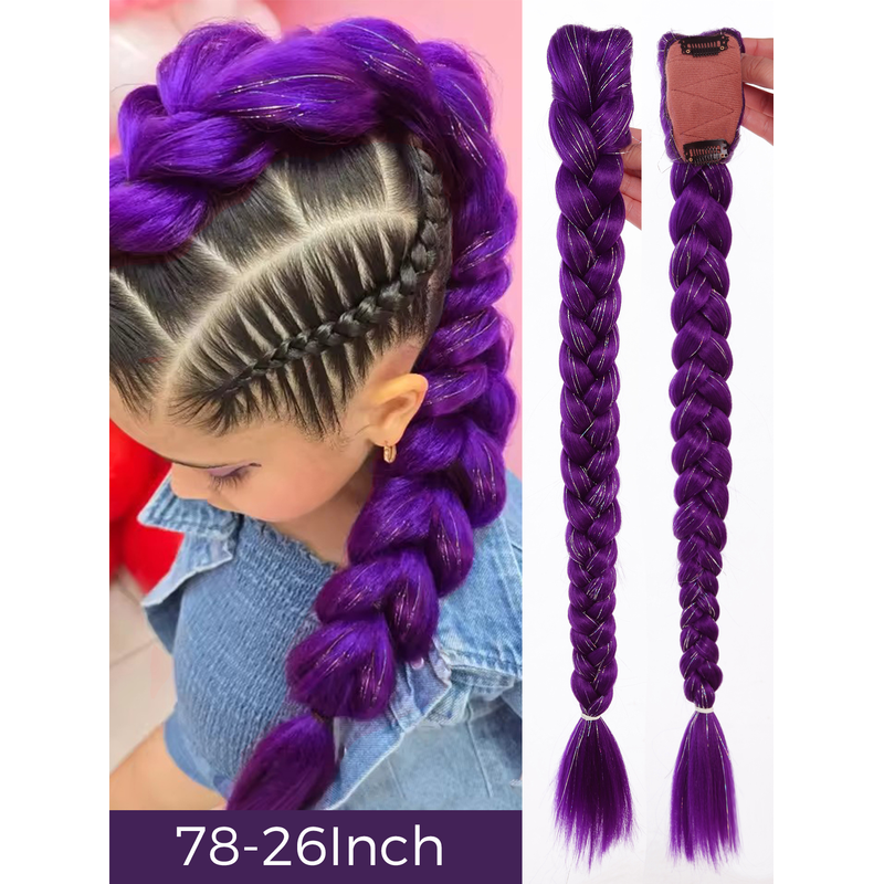 32inch Braided Purple Hair Ponytail with Tinsel Hair Wig Super Extensions Shiny Tinsel Hair for Kids Christmas Cosplay Rumi Hair