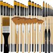 32Pcs Paint Brush Set for Acrylic Painting Premium Nylon Bristles with Round Filbert,Flat,Fan,Angle,Fine Detail Brush for Artist