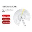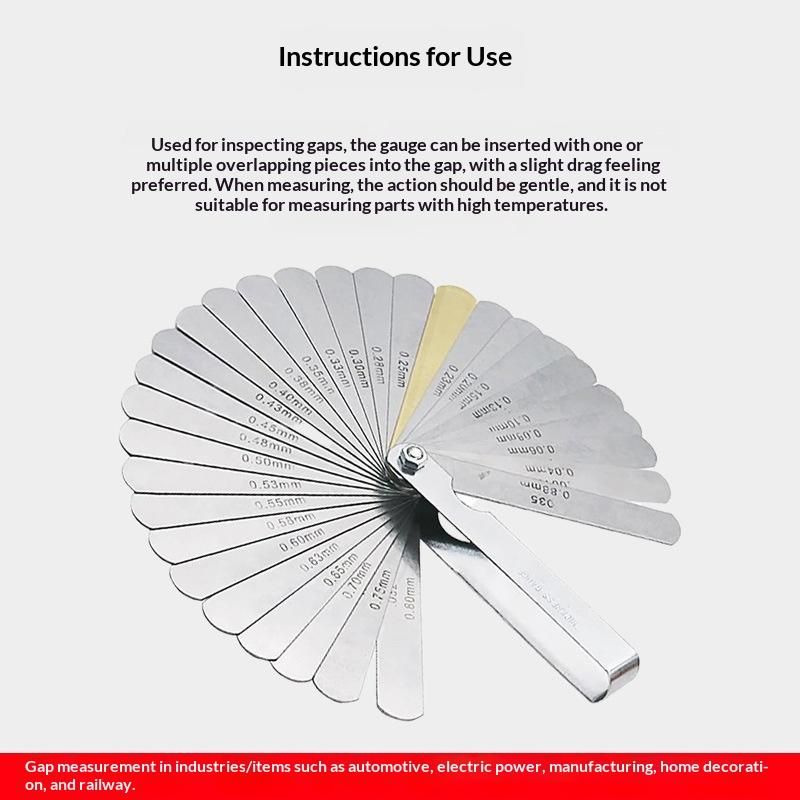 Feeler gauge set: Made of high-quality materials, each measuring feeler gauge has 32 blades thickness; Foldable feeler gauges, easy and convenient to take and store.