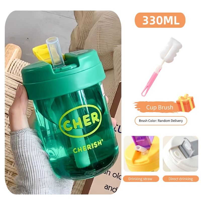 330ml Mini Plastic Straw Water Bottle Anti-fall&Leakproof Cute Portable Outdoor Sports Water Bottle Kids Juice Cup Drinkware