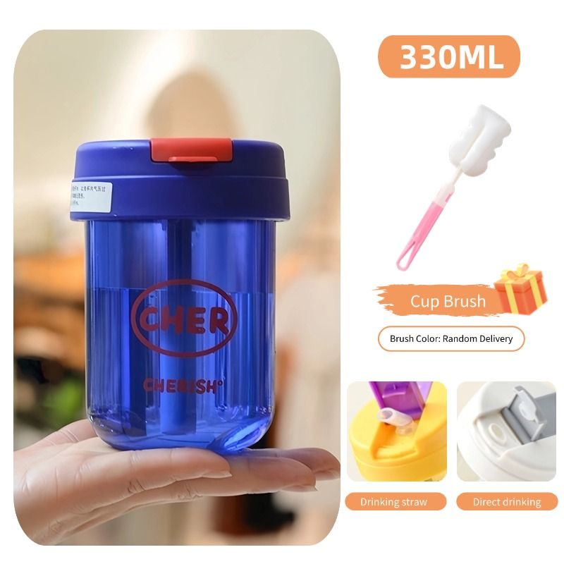 330ml Mini Plastic Straw Water Bottle Anti-fall&Leakproof Cute Portable Outdoor Sports Water Bottle Kids Juice Cup Drinkware