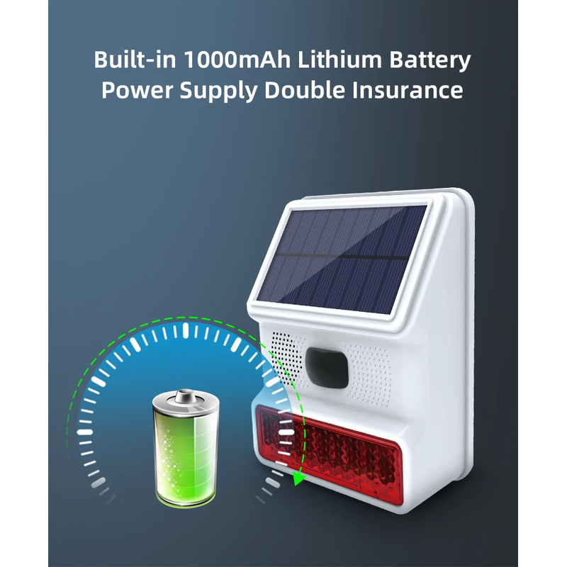 GauTone Wireless Solar Siren Outdoor Strobe Sound Powered Flash Waterproof Alarm Siren for 433MHz GSM Wifi Alarm System