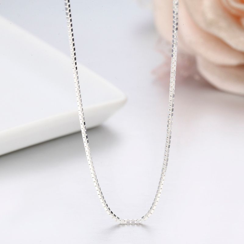 This kind of box chain is pure 925 sterling silver, without Platinum Plated, so the color is lighter than Rhodium plating chains. If you enjoy the Platinum Plated chains, please contact us, we accept customization.