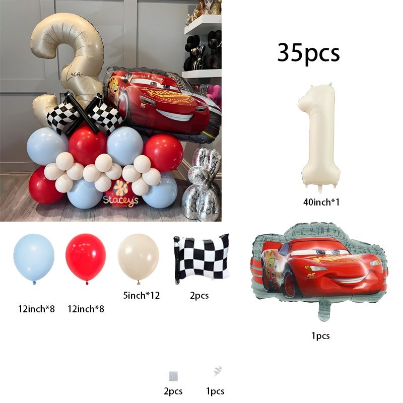 35-Piece Lightning McQueen Cars Set – Checkered-Flag & Off-White Number Foil Balloons for Boys’ & Girls’ Birthday Party Decor