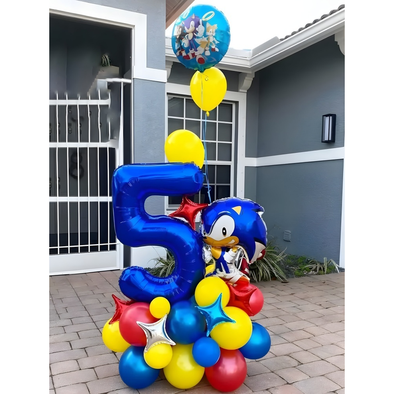 35-Piece Sonic the Hedgehog Cartoon Character Boys’ Balloon Kit – Number Combo Foil Balloons for Birthday Party, Baby Gift