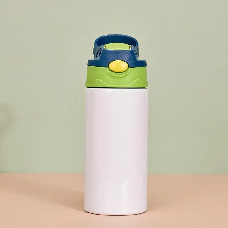 12oz Sublimation Straight Sippy Cup Flip Top Kids Bottle Stainless Steel Double Wall Water Tumbler with Straw Sippy Bottle