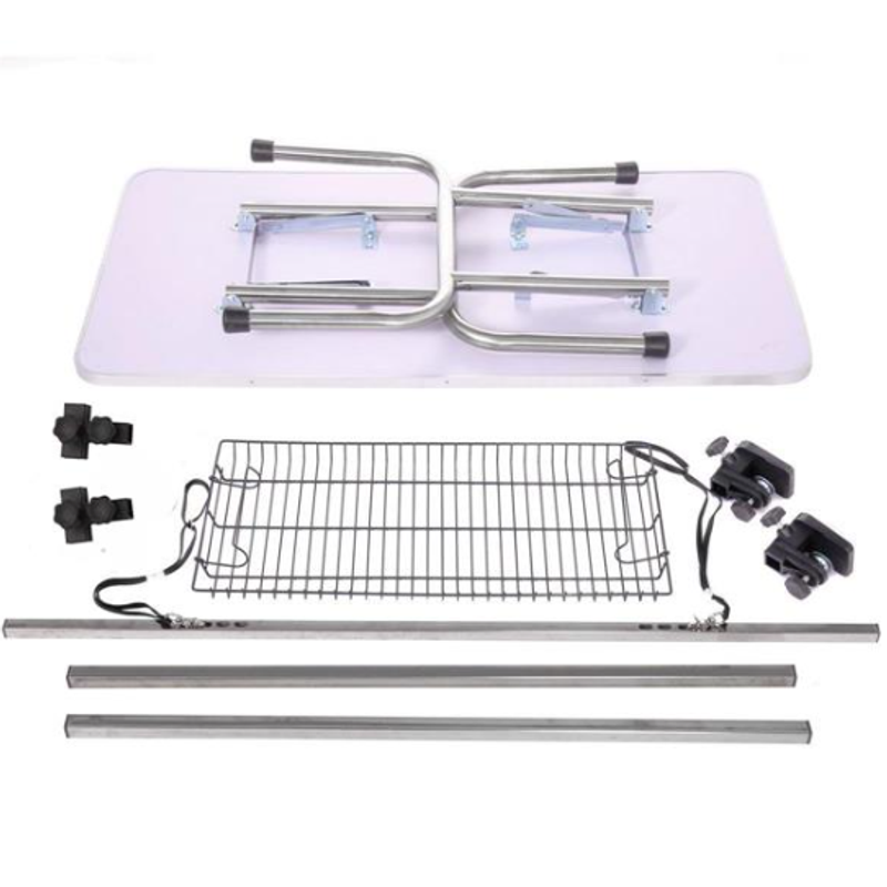 Heavy-duty stainless steel folding legs that won't rust or corrode like chrome.