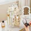 【Clear & Elegant Design】 rotating makeup organizer for vanity with Clear design and diamond pattern makes this makeup organizer spinner an elegant look. Not only suitable for storage but also suitable for decoration. The clear material of the spinning makeup organizer enables you easily find out where your cosmetics are.