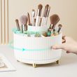 1.360° Accessibility: Effortless Reach. With a rotatable base that spins a full 360 degrees, this makeup brush storage box ensures that all your beauty tools and cosmetics are within easy reach.