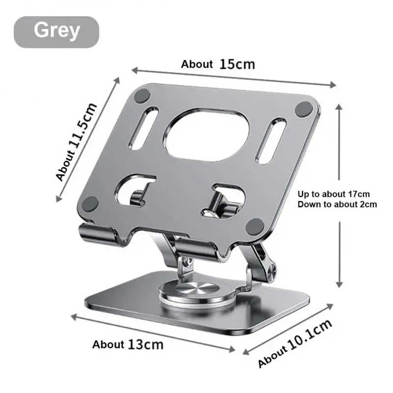 【360°Rotation】With a 360°rotating base, this tablet swivel stand turns your tablet into a desktop monitor, making it easy for you to draw, write, read, and share 【Wide Compatibility】 This tablet stand is compatible with various devices, including iPad/ iPad Air/ Pro/ Mini, Samsung Galaxy Tab, Android tablets, smartphones, etc 【Broad Application】The tablet dock can be used for cooking tutorials, office meetings, studying online classes and many more applications 【Adjustable & Flexible】The two-shaft structure increases the stability of this tablet holder and makes it adjustable in height. Additionally, this tablet stand is foldable and portable 【Refined Craftsmanship】 Made of premium aluminum alloy and equipped with silicone pads, this tablet drawing stand holds your device in position whilst protecting it from scratches and preventing it from sliding