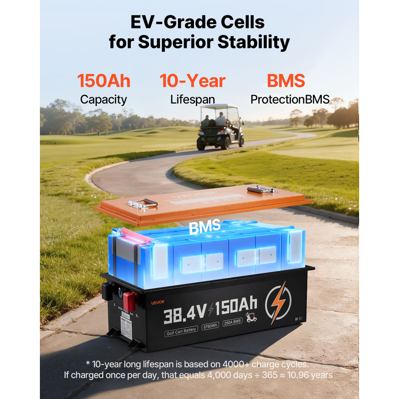 Go Farther, Play Longer: This 150Ah lithium golf cart battery is built with EV-grade cells, bringing stable power and extended driving distance. Say goodbye to range anxiety and hello to longer playtime on the course