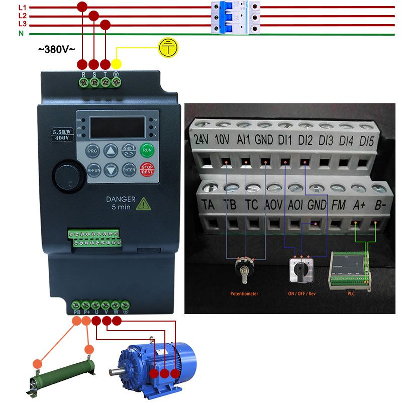 2. Adjust speed by panel potentiometer or external potentiometer.