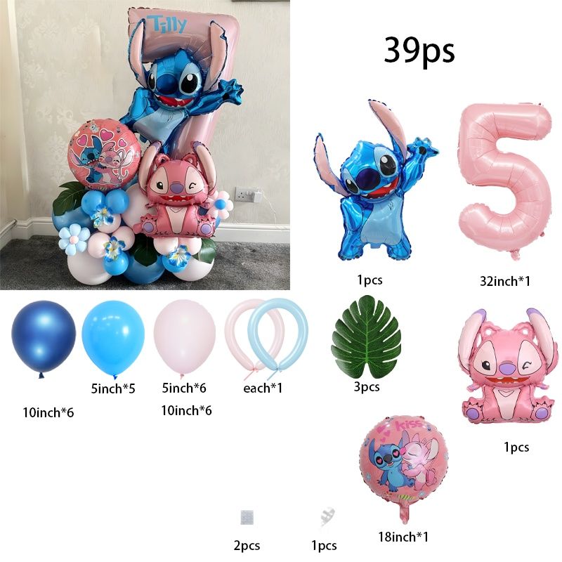 39-Piece Cartoon Theme Party Balloons – Pink Number 1–9 Set, Kids Birthday Party Decor, Baby Shower Supplies & Gift for Boys & G