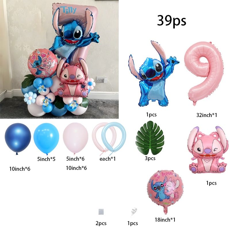 39-Piece Cartoon Theme Party Balloons – Pink Number 1–9 Set, Kids Birthday Party Decor, Baby Shower Supplies & Gift for Boys & G