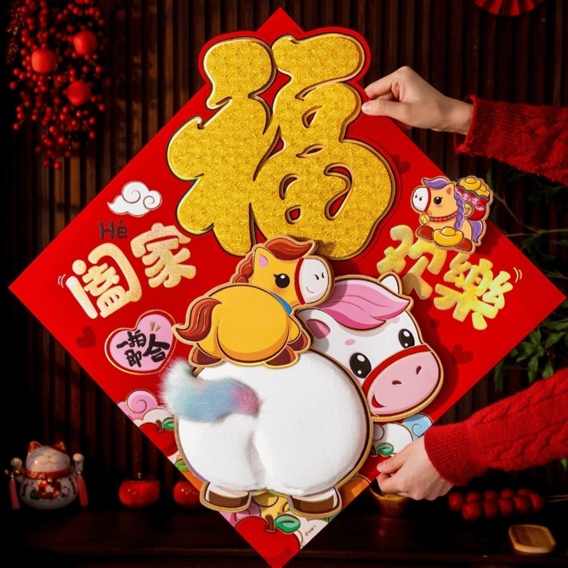 3D Bronzing 2026 Horse Year Door Sticker God of Wealth Cartoon Pony Fu Character Sticker Decorative Chinese Style
