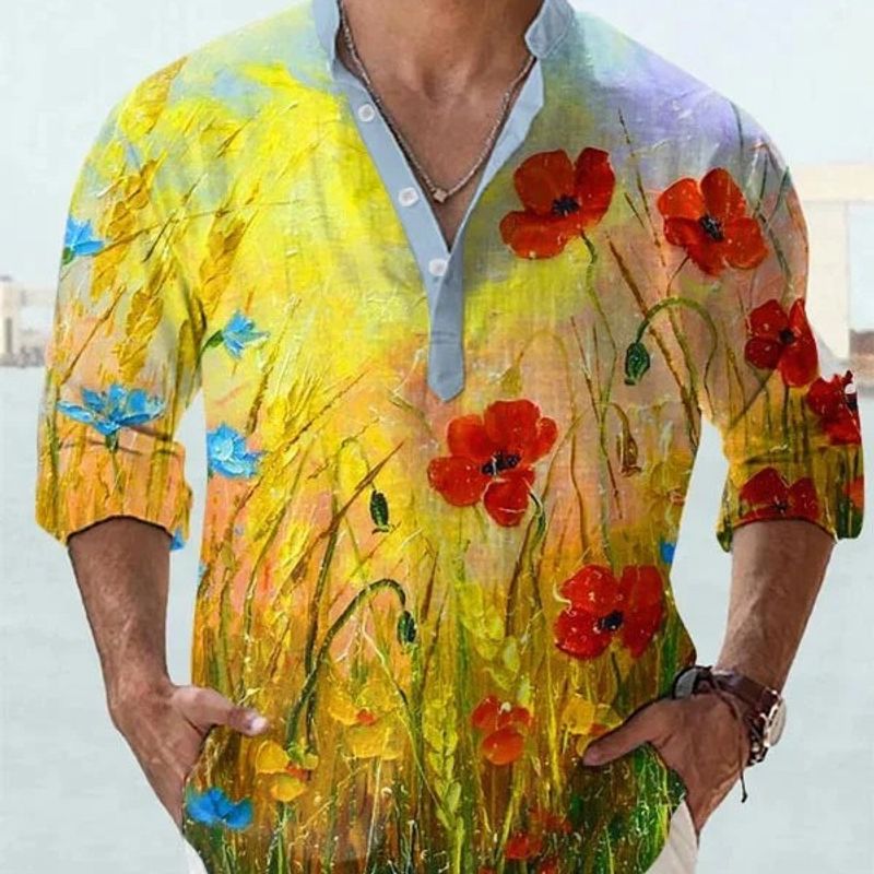 3D Digital Printing Polo Long Sleeve Shirt Men G48Z184 2XL