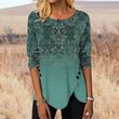 3D Digital Retro Printed Button Irregular Hem Round Neck Long Sleeve INKTX039 XL
