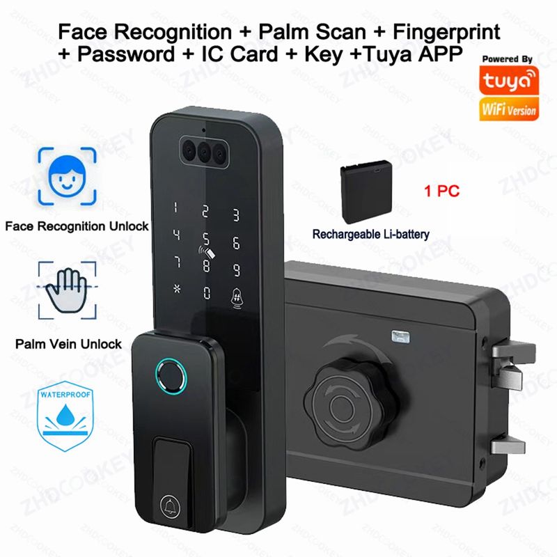 3D Face Palm Recognition Smart Door Lock Waterproof Tuya WiFi App Remote Control Fingerprint Electronic Gate Lock For Home Villa