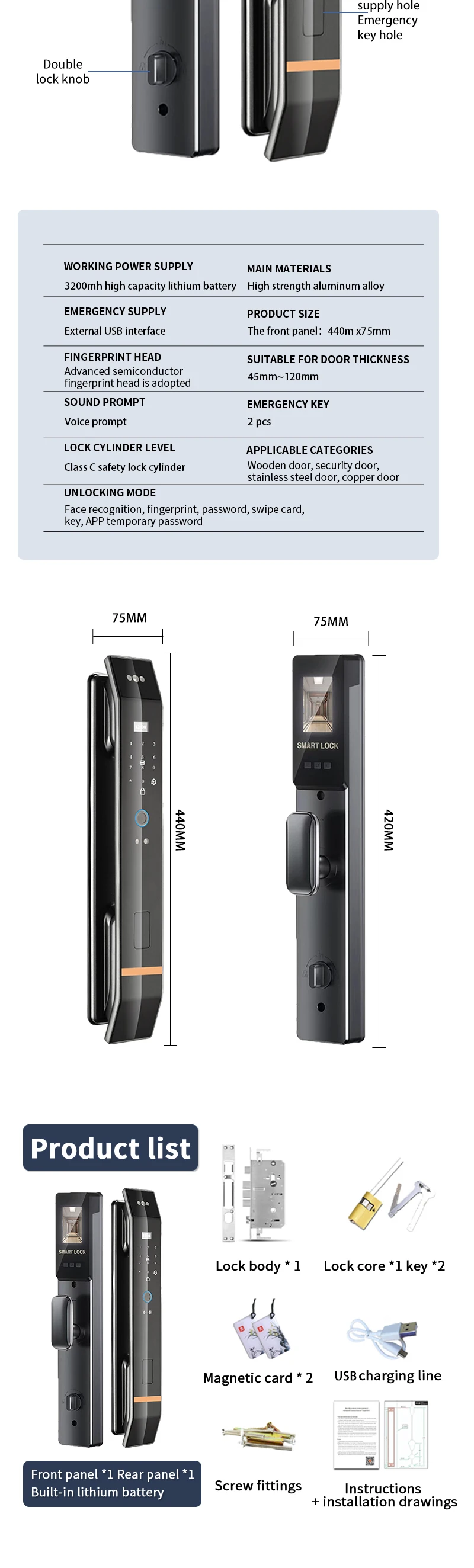 Battery: 3200mAh lithium battery for automatic lock