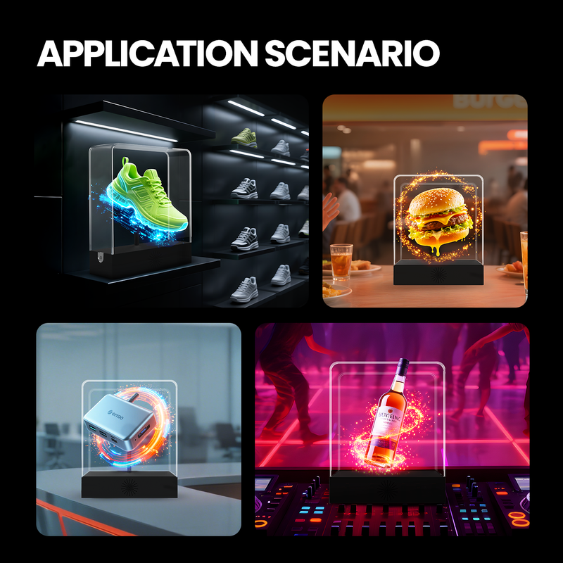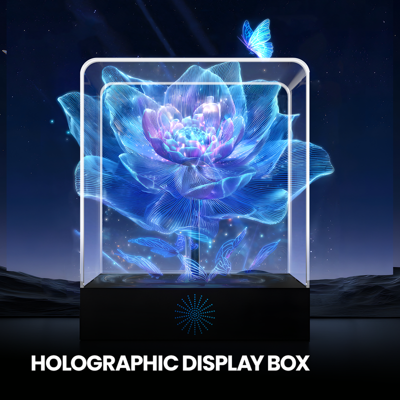 3D Glasses-Free Holographic Fan LED Light Display Box for Halloween & Christmas Desktop Decor Plays Videos & Images