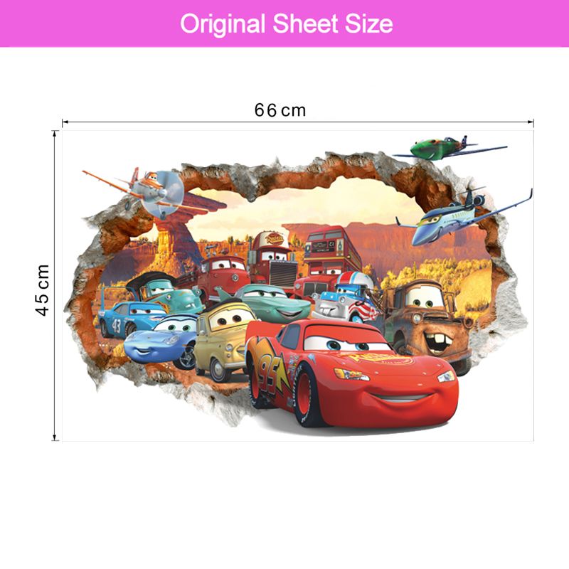 3d Macqueen Cars Broken Hole Wall Sticker For Kids Bedroom Home Decoration Cartoon Anime Mural Art Pvc Movie Poster Boys Decals