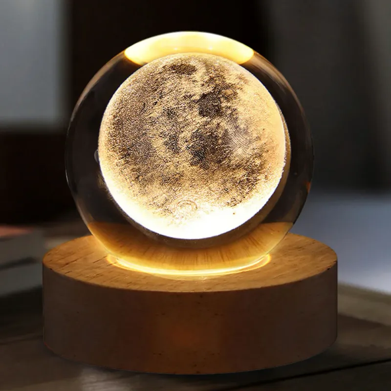 1.Exquisite 3D Laser Engraved Crystal Ball: Our crystal ball night light comes in four different styles, featuring advanced 3D laser engraving techniques. The 3D crystal ball LED night light showcases various themes like the solar system, ensuring that the crystal maintains its brilliance even after long-term use. Perfectly crafted, these 3D crystal ball decorations create a romantic ambiance for both children and adults. The LED-lit wooden base adds a warm and bright glow, making it a stunning centerpiece in any room. Specification: Origin: Mainland China