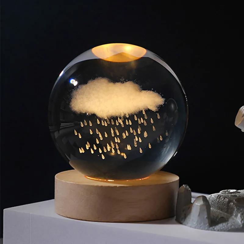 1.Exquisite 3D Laser Engraved Crystal Ball: Our crystal ball night light comes in four different styles, featuring advanced 3D laser engraving techniques.  The 3D crystal ball LED night light showcases various themes like the solar system, ensuring that the crystal maintains its brilliance even after long-term use.  Perfectly crafted, these 3D crystal ball decorations create a romantic ambiance for both children and adults.  The LED-lit wooden base adds a warm and bright glow, making it a stunning centerpiece in any room.