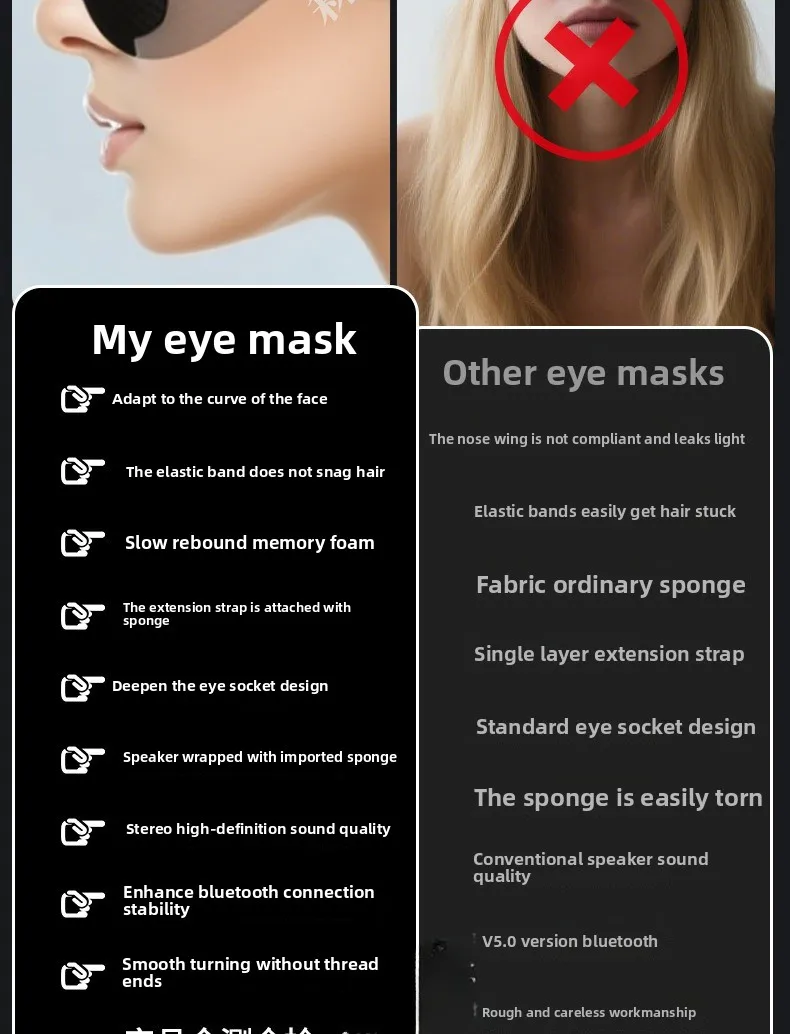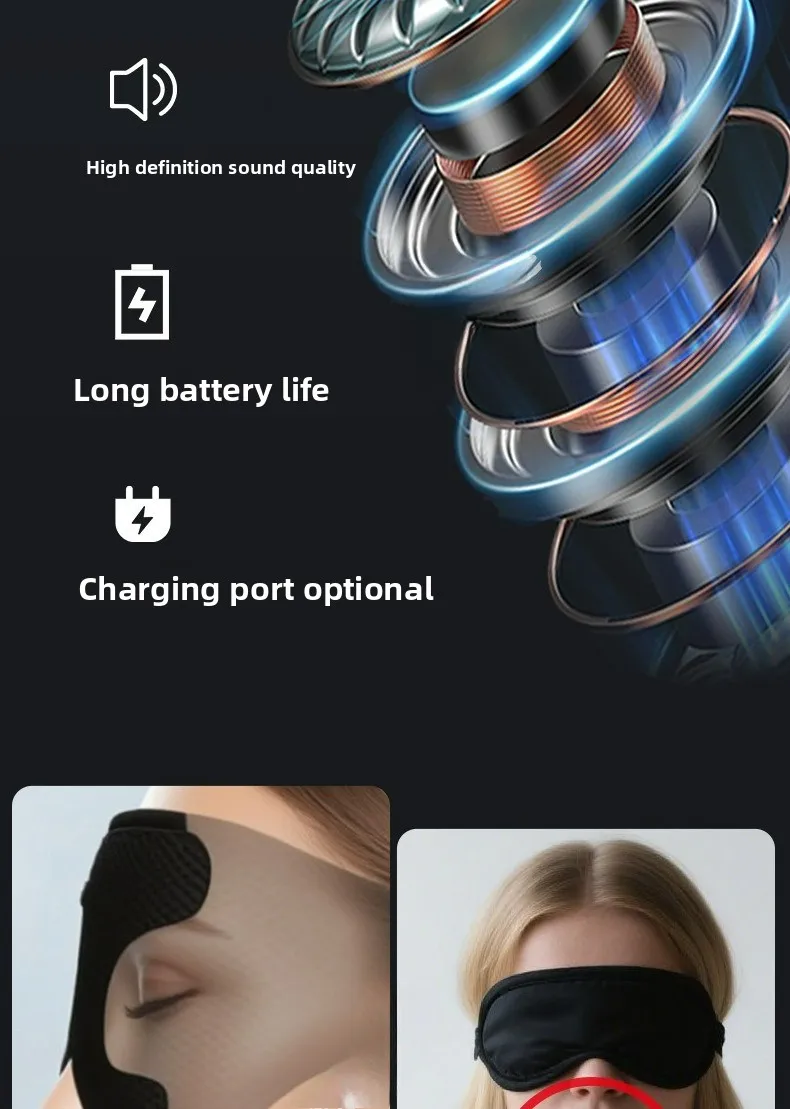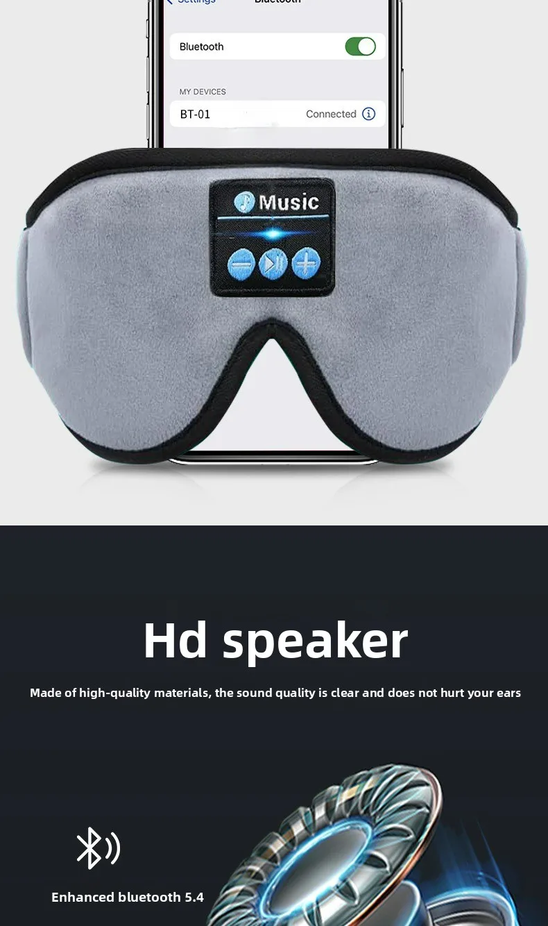 3D Portable Bluetooth Music Sleep Eye Mask: Light-Blocking for Sleep with Detachable Parts Smart Call Ideal for Restful Nights