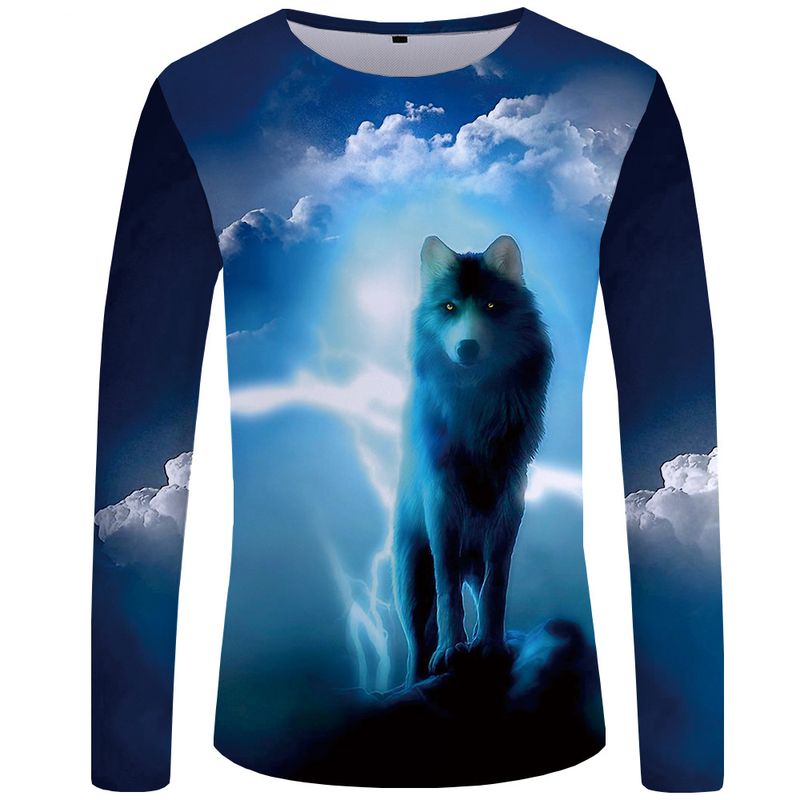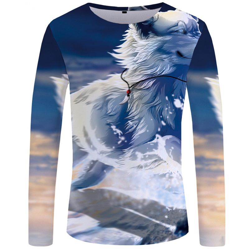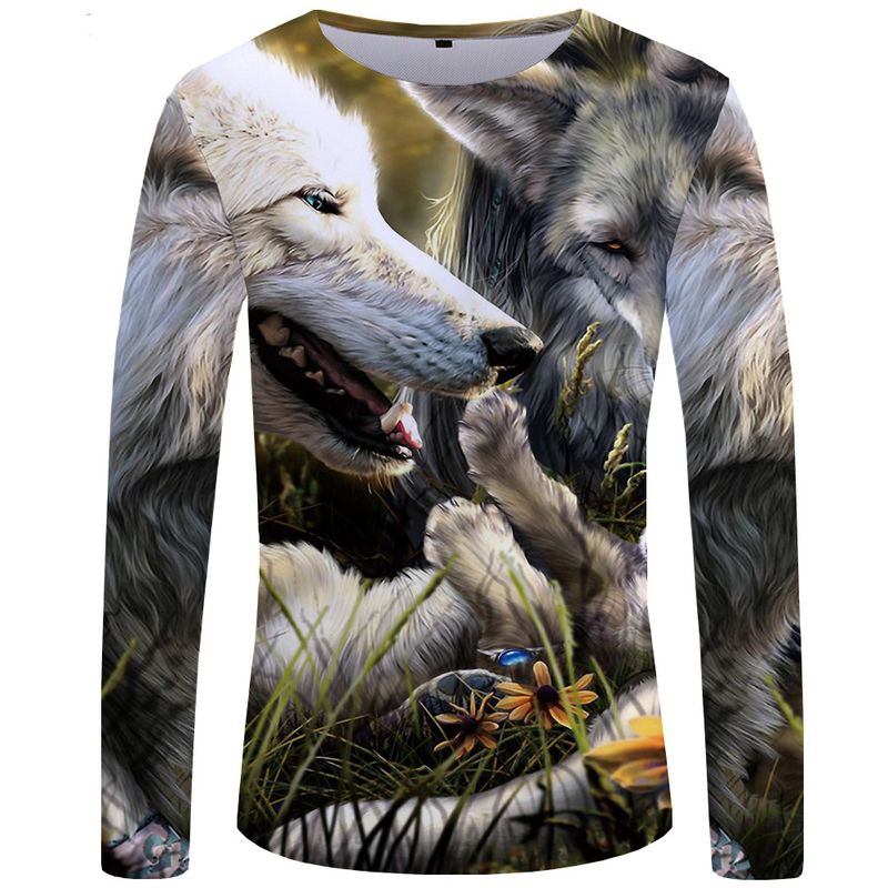 3d printed wolf series long sleeve T-shirt men 4Style XL