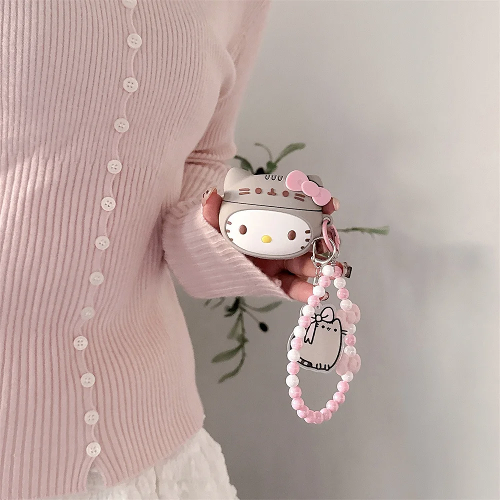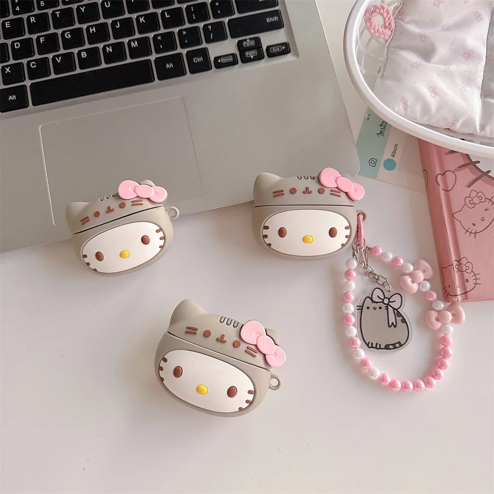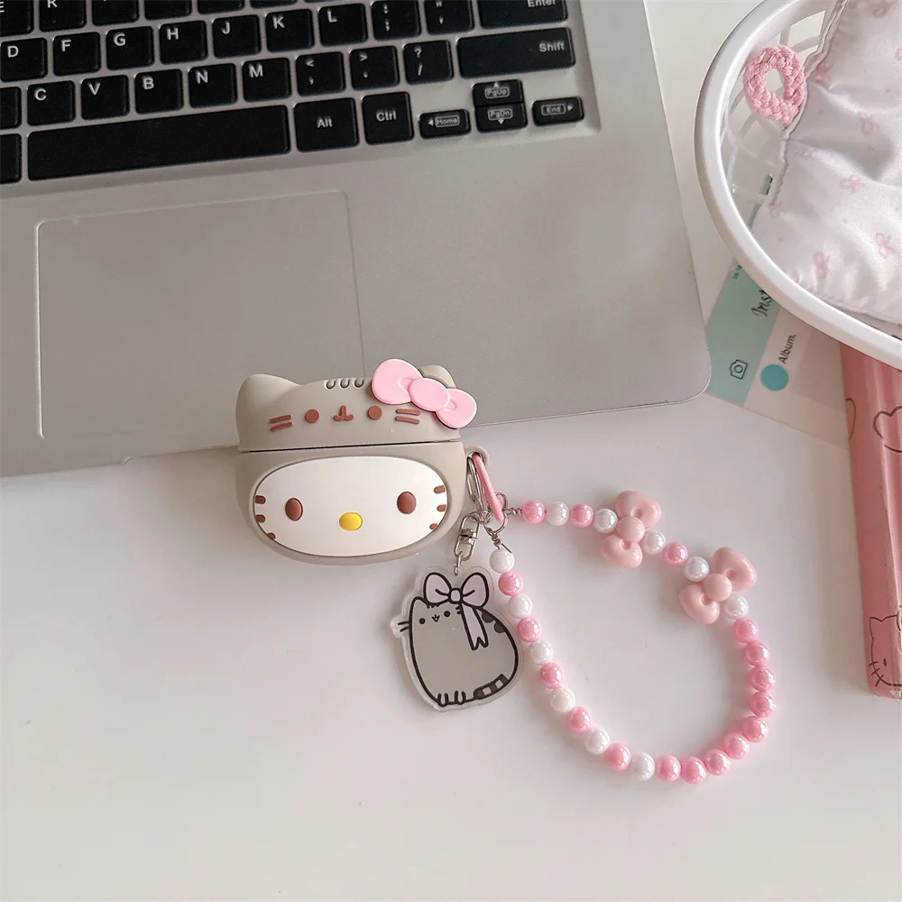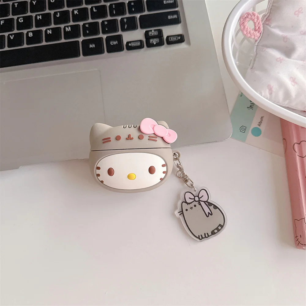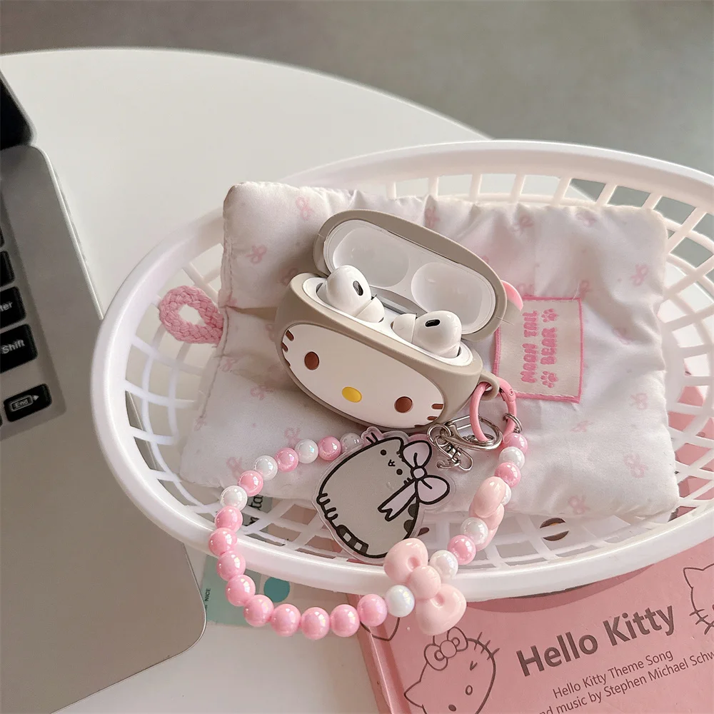 3D Sanrio Cute Hellokitty Headphone Case Silicone Protective Cover for Apple Airpods Pro 2 Pro 3 Airpods 4 3 2 Case with Pendant