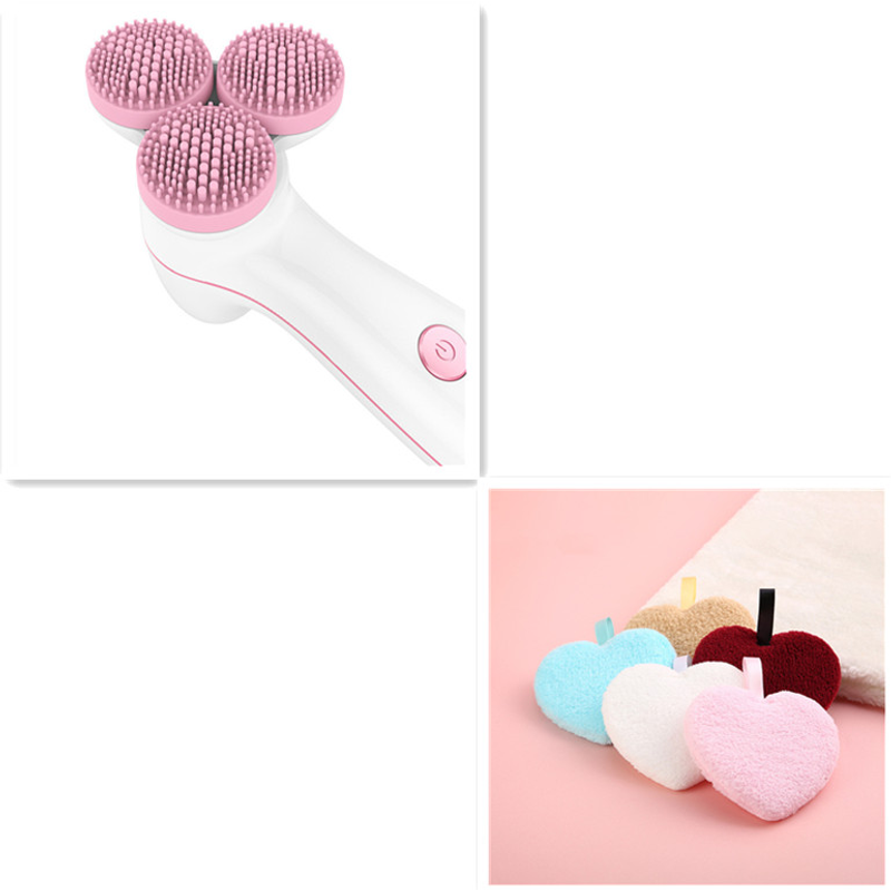 3D Smart Massage Cleanser Electric Cleanser Electric Silicone Facial Cleanser Pink set