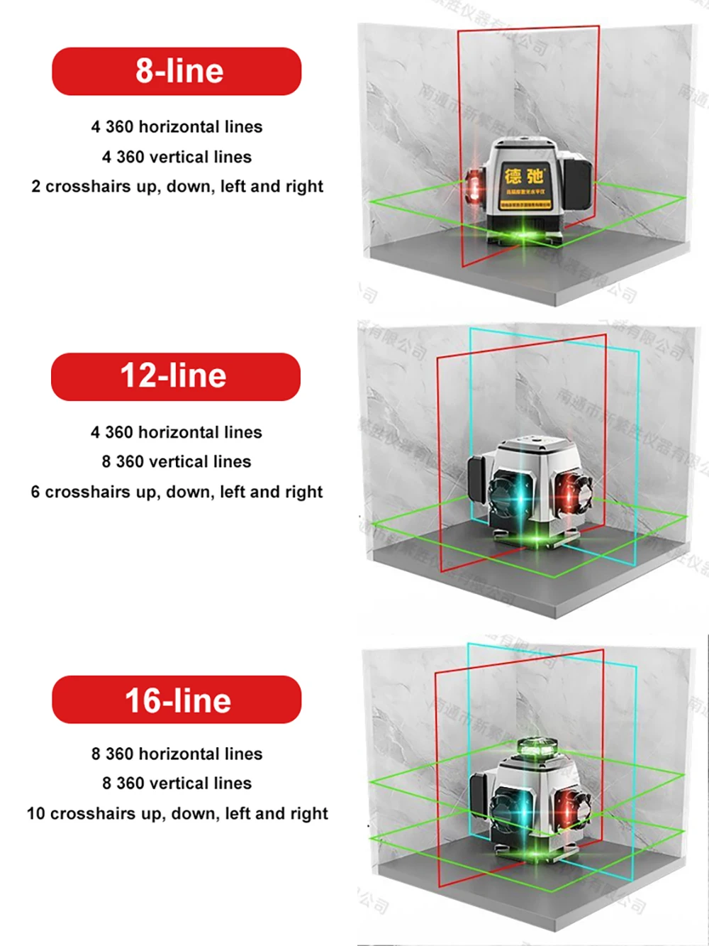 3D/4D Laser Level 12/16 Lines 3 Colors Horizontal Vertical Cross Lines With Remote Control 360 Degree Rotate Laser Window