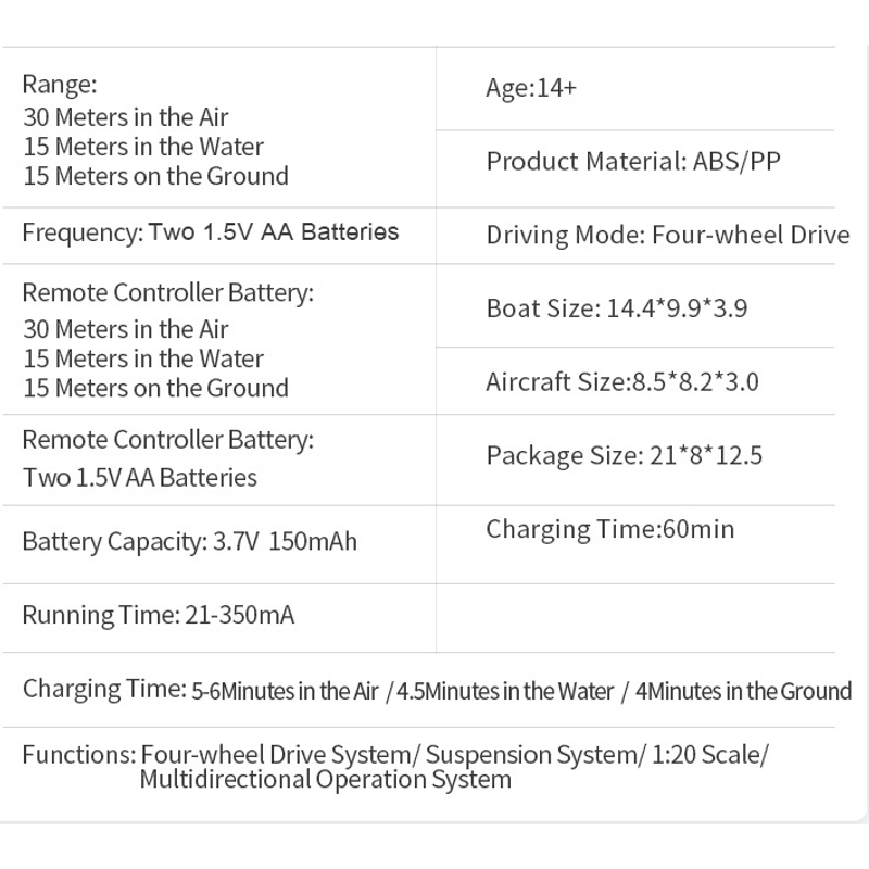 1. Flight mode: forward and backward, fly left, fly right, rotate left, rotate right, 360° roll function, fine adjustment of front, back, left and right, headless mode, speed switch.