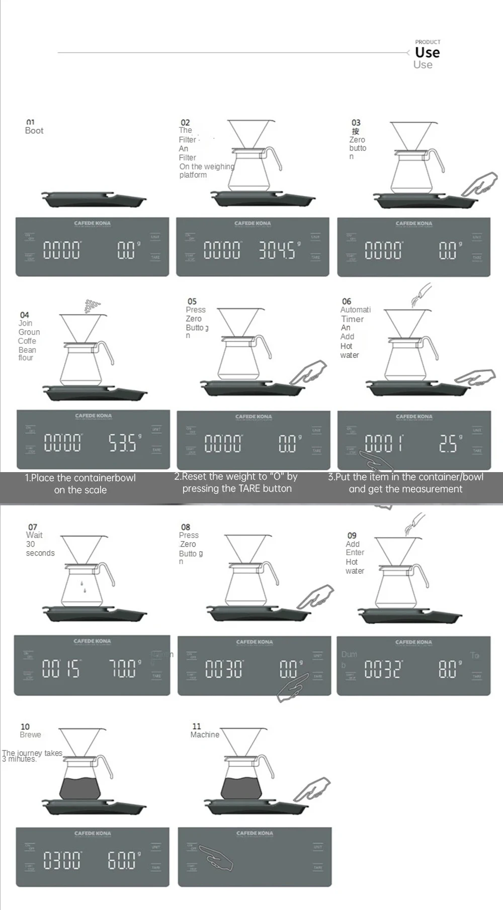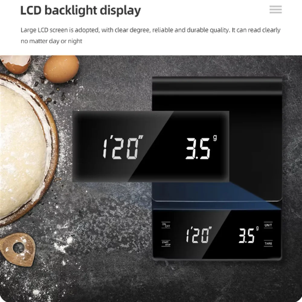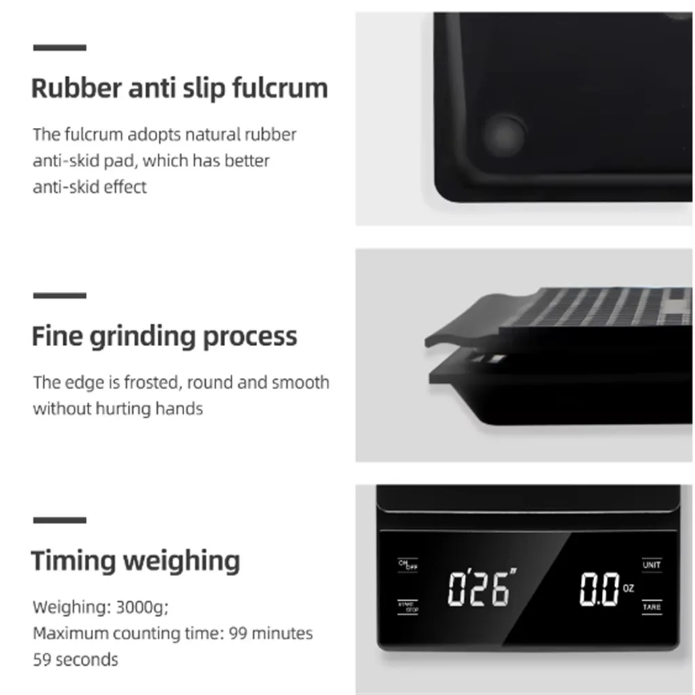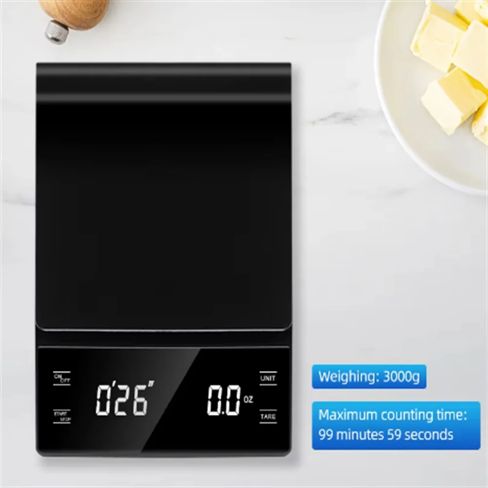 3kg/0.1g Coffee Scale with Timer Kitchen Tools Digital Multifunction Weighing Scale Pour Over Drip Espresso Scale LCD Display