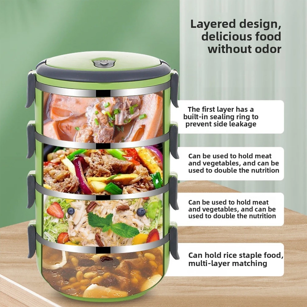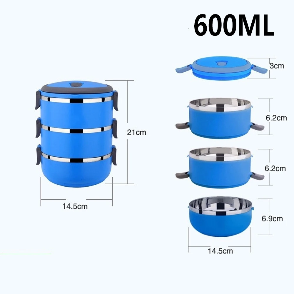 3Layer Stackable Lunch Box Stainless Steel Airtight Insulated Food Storage Container Leakproof with Handle 600L 1 Layer Portable