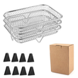 This package contains 3× Air Fryer Rack, 8× Silicone Feet. With the 8 silicone feet increases the space between layers that is more convenient and hassle saving for making popcorn, French fries, cookies, grilled meat, roasted potatoes, dehydrated fruits, and more.
