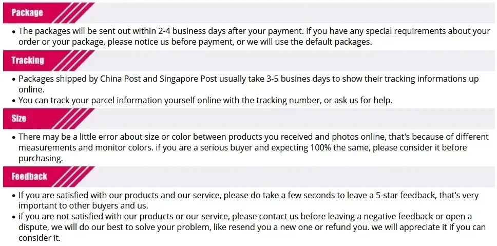 If your order is delayed, lost, or arrives damaged, please contact us within 7 days of the expected delivery date. We will work with the shipping carrier to resolve the issue as quickly as possible.