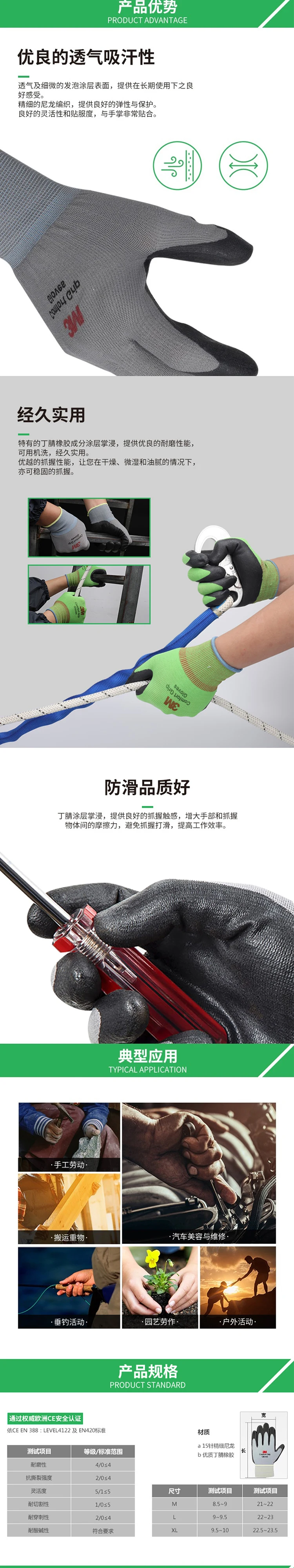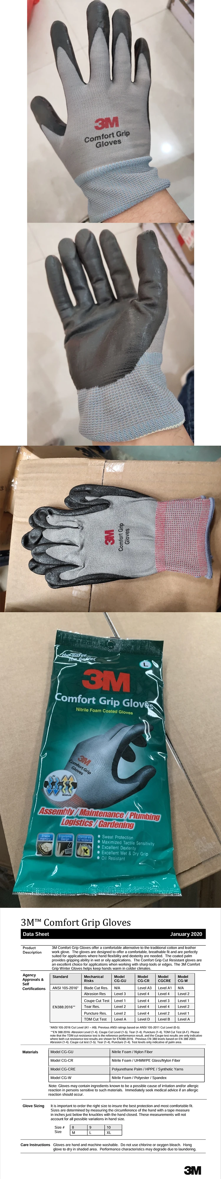 3M™ Comfort Grip General Use Gloves feature a nitrile palm coating that makes these gloves a light, flexible, abrasion-resistant and long lasting alternative to many cotton and latex palm-coated gloves. They provide excellent grip, even in wet or oily conditions.
