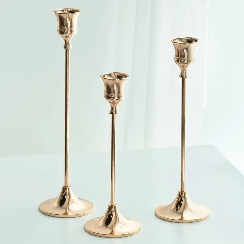 3pc set Brass Gold Candlestick Holder Set Candle Stick Holders kit Decorative Candlestick Stand for Wedding Party Dinning
