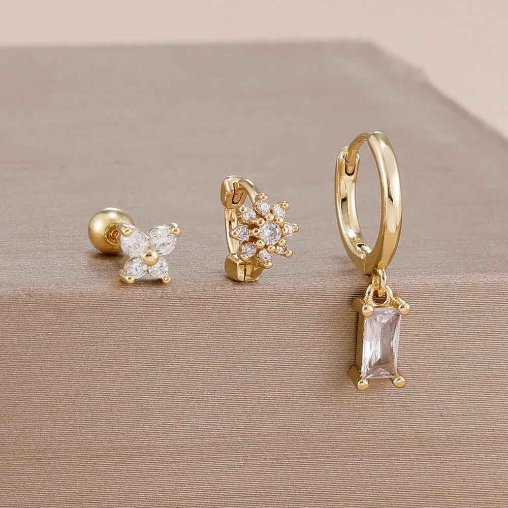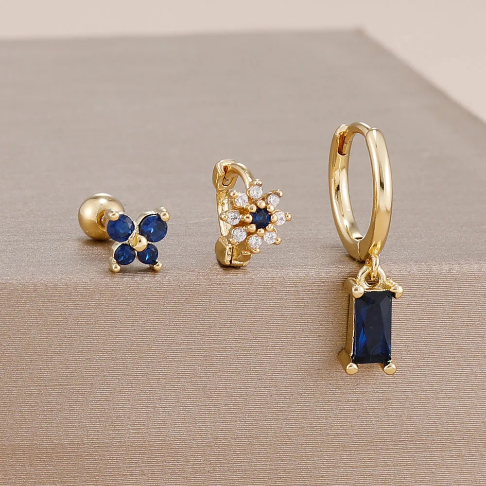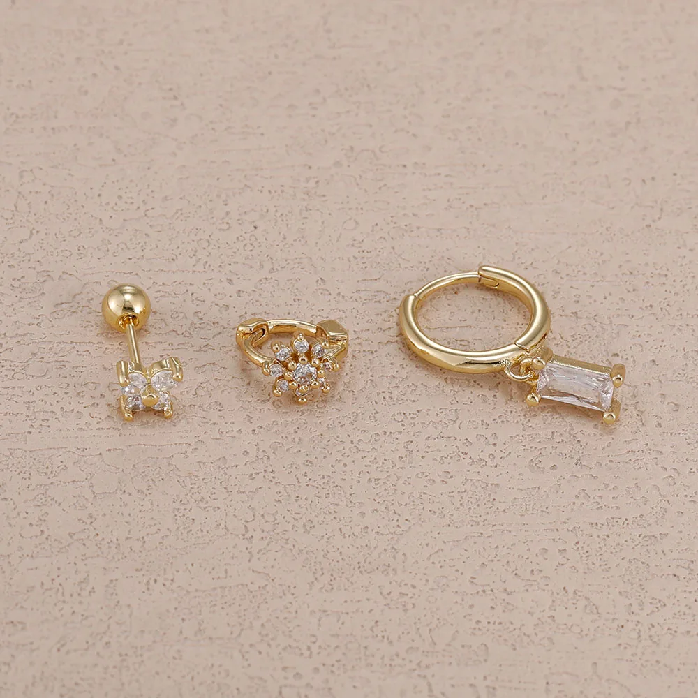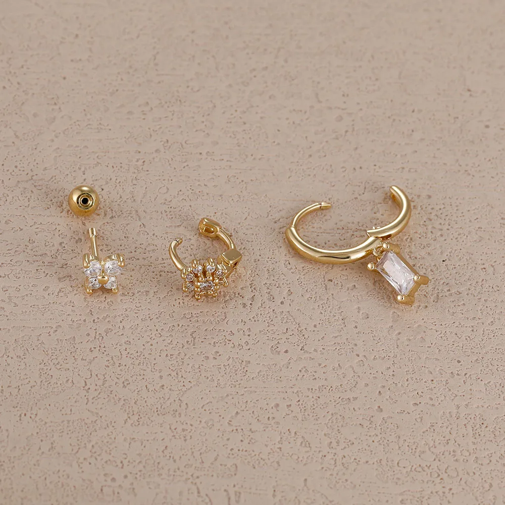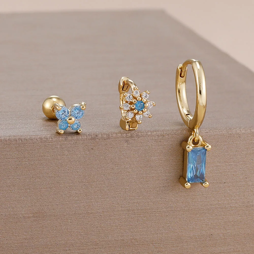 3PCS 14K Gold Plated Zircon Square Hoop Earrings Set 12 Constellation Stainless Steel Butterfly Stud Earring Piercing Jewelry