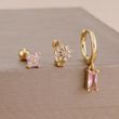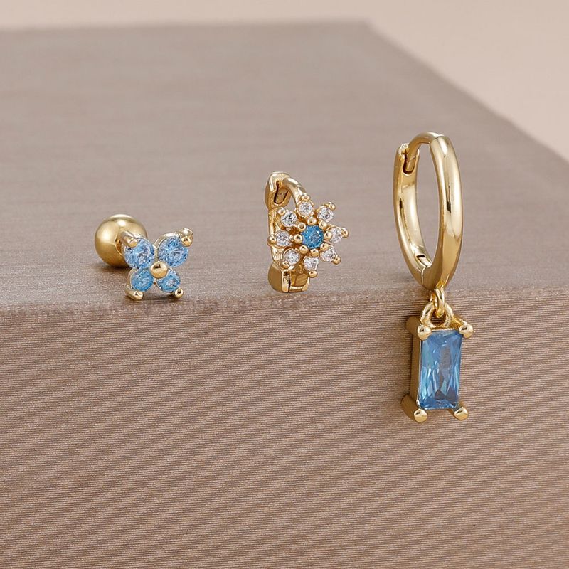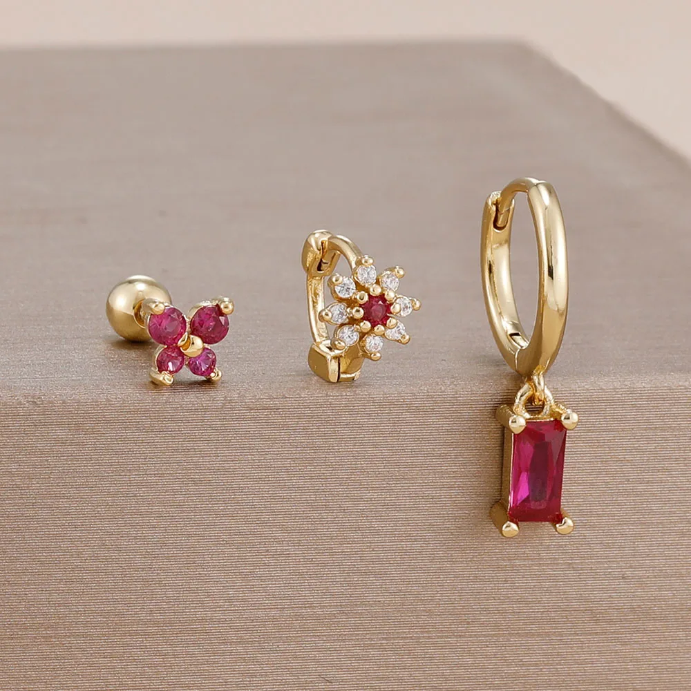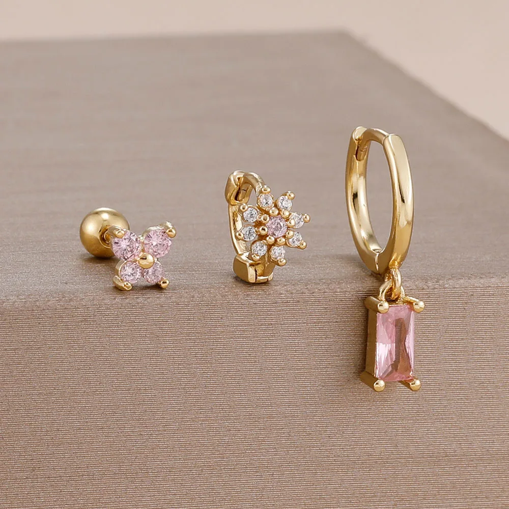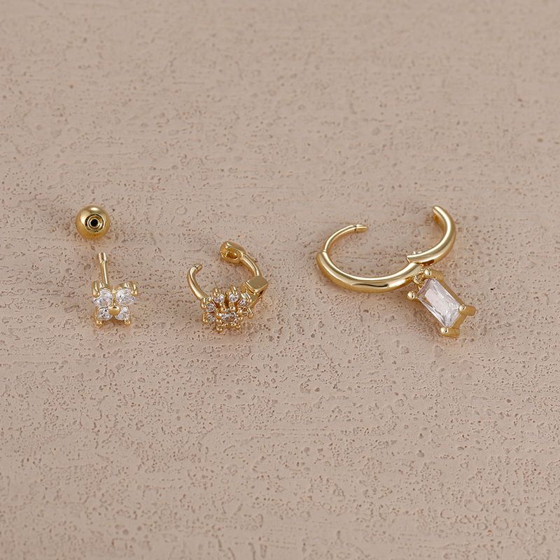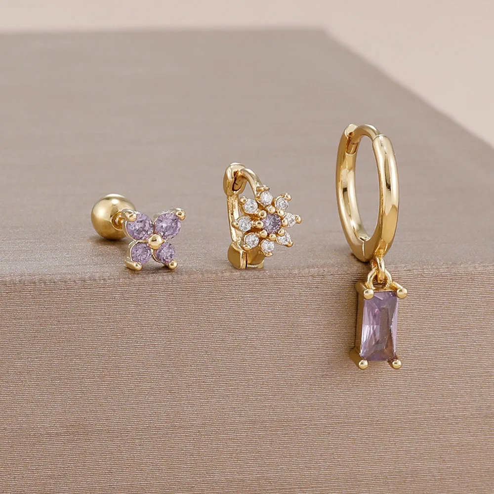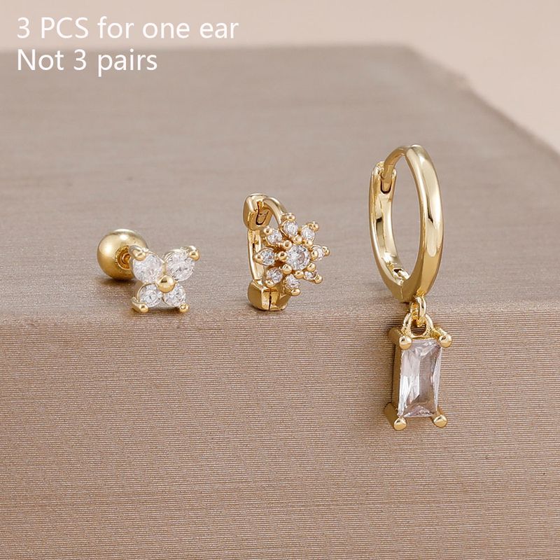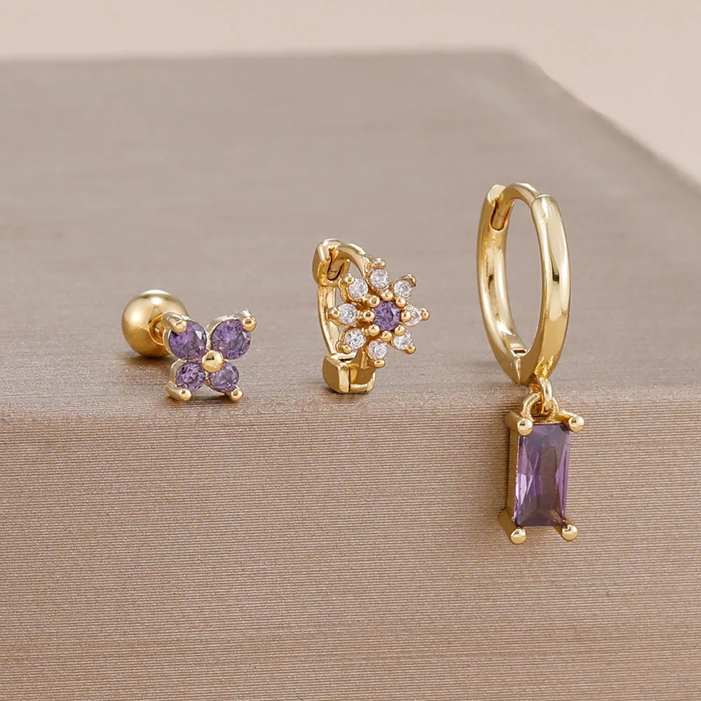 3PCS 14K Gold Plated Zircon Square Hoop Earrings Set 12 Constellation Stainless Steel Butterfly Stud Earring Piercing Jewelry