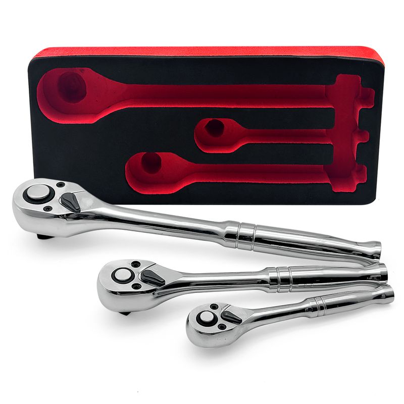 【Versatile Ratchet Set for Every Task】: 1/4" drive ratchet – Ideal for small screws, electronics, and household repairs. 3/8" drive ratchet – Perfect for automotive, motorcycle, and bike repairs. 1/2" drive wrench set – Built for heavy-duty automotive and industrial work.